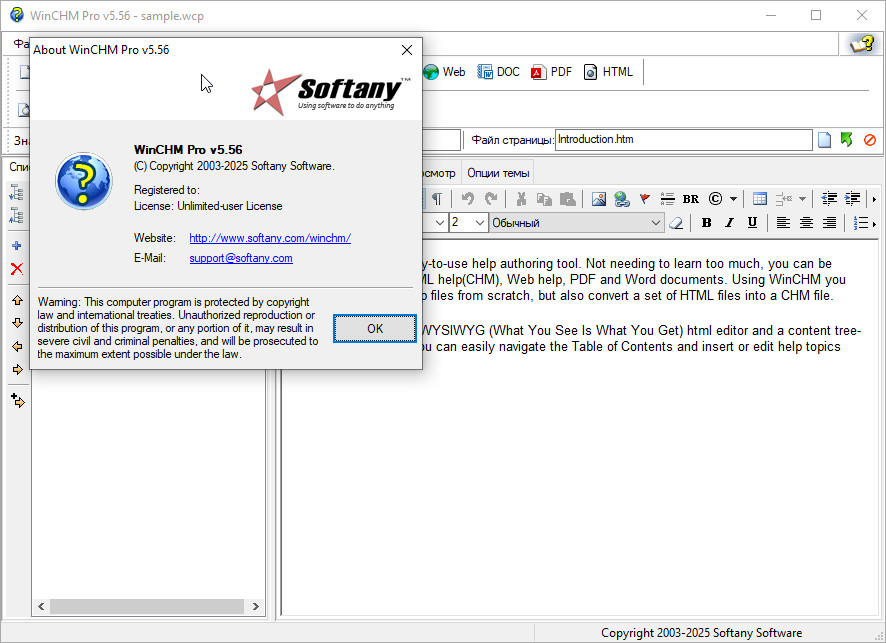 ![]() Долго колебался стоит ли публиковать программу WinCHM Pro, и всё же решил, что стоит. Все мы хотя бы раз пользовались справками в электронном виде, которые порой несут полезную информацию. Так вот если Вам нужно создать что-то нечто подобное, то данное приложение специализируется как раз именно на таких вещах. Оно позволит Вам разработать на своём компьютере солидную справку HTML формата, так же поддерживается создание инструкций формата PDF. Поддерживаются шаблоны, что в свою очередь позволяет работать с программой не подготовленным людям. Более того работа с HTML ведётся при помощи графического редактора WYSIWYG, с которым сможет справится пользователь с любым уровнем знания компьютера. В общем если нужно создать грамотную справку, то смело можете использовать это приложение. Размер: 3.73 Mb Язык: английский / русский Лекарство: имеется Скачать: Softany WinCHM Pro 5.56 |