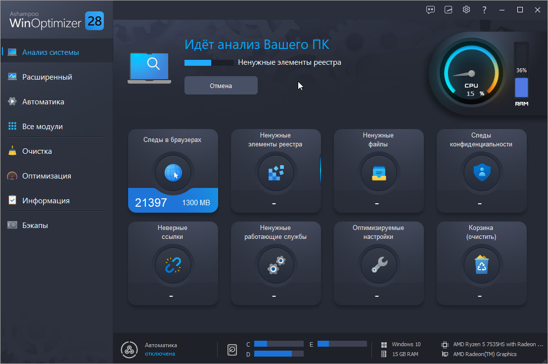 ![]() Ashampoo WinOptimizer - это не что иное как отличный инструмент для подержания системы персонального компьютера в надлежащем состоянии. Уже ни для кого не секрет что с течением времени компьютер начинает работать медленнее. Пропадает свободное дисковое пространство, система начинает медленнее реагировать на действия, появляются ошибки, и прочие неприятности. Всё это происходит из-за банального загрязнения, всё дело в том, что в ходе эксплуатации появляются записи в реестре, а также лишние файлы, в результате этого система начинает давать сбои. Что бы избежать этого, необходимо периодически подчищать её, для этого можно воспользоваться выше упомянутой программой. Приложение поможет выявить на дисках устаревшие файлы которые более не нужны для нормальной работы, тем самым можно освободить место на них. После этого можно сделать дефрагментацию, благодаря которой снизится время отклика системы. Для повышения быстродействия можно отключить не нужные Вам процессы Windows. Кроме этого необходимо будет поработать с реестром, то есть очистить его от устаревших записей, и конечно же дефрагментировать его. Даже если выполнить вот эти процедуры, Вы непременно заметите прирост производительности. Перед выполнением любого действия рекомендуем создавать резервную копию, что бы в случае некорректной работы системы, Вы смогли отменить внесённые изменения. Ещё эта программа позволяет проводить тонкую настройку операционной системы. Более того, имееться возможность находить одинаковые файлы, шифровать информацию, ускорять старт системы. За активацию Ashampoo WinOptimizer, можете не пережевать вообще, к ней есть ключ, и инструкция к нему. Всё это находится в одной папке с программой. Размер: 24 Mb Язык: русский Таблетка: имеется (ключ) ОС: XP, Vista, 7, 8, 10, 11 Скачать: Ashampoo WinOptimizer 28.00.20 |