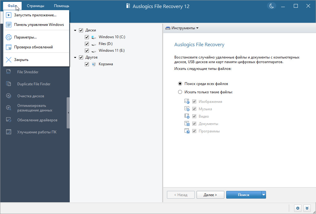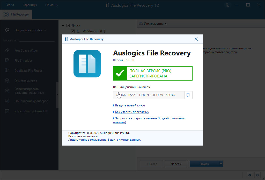 ![]() Auslogics File Recovery - незаменимый инструмент для возвращения нечаянно стёртых данных с жестких дисков компьютера. Наверняка каждый удалял случайно информацию, потом жалея, что это сделал, но уже было поздно. А иногда случалась допустим вирусная атака и файлы пропадали сами. В общем хочу сказать, что ситуации могут быть разные, из-за которых пропадают данные. Объединяет их лишь сама потеря информации, в общим если вы оказались в подобной ситуации, рекомендуем воспользоваться этой программой. Уже сейчас поддерживается восстановление абсолютно любых типов файлов, в ходе работы можно выбрать какие именно файлы нужно вам вернуть, имеется ввиду их тип. Это сделано для того, чтобы программа искала не все подряд файлы, ведь так будет на много проще найти именно ту информацию которая вам нужна. Может работать как с жесткими дисками, так и с любыми флэш накопителями, более того, умеет искать информацию даже на удалённых носителях. Приложение может найти для вас информацию даже если раздел был удалён или отформатирован. Кроме этого можно создавать копию всего диска, что бы если потребуется можно было быстро возвратить всю информацию. По мимо всего сказанного, имеется возможность так же удалять надежно информацию, то есть без возможности её восстановить. Функция называется File Shredder, если её использовать для стирания данных, их в последующим будет невозможно возвратить даже используя специальные программы для этого. Размер: 18 Mb Язык: английский / русский Таблетка: keygen ОС: Windows 11/10/8/7/XP Скачать: Auslogics File Recovery 12.1.1 |