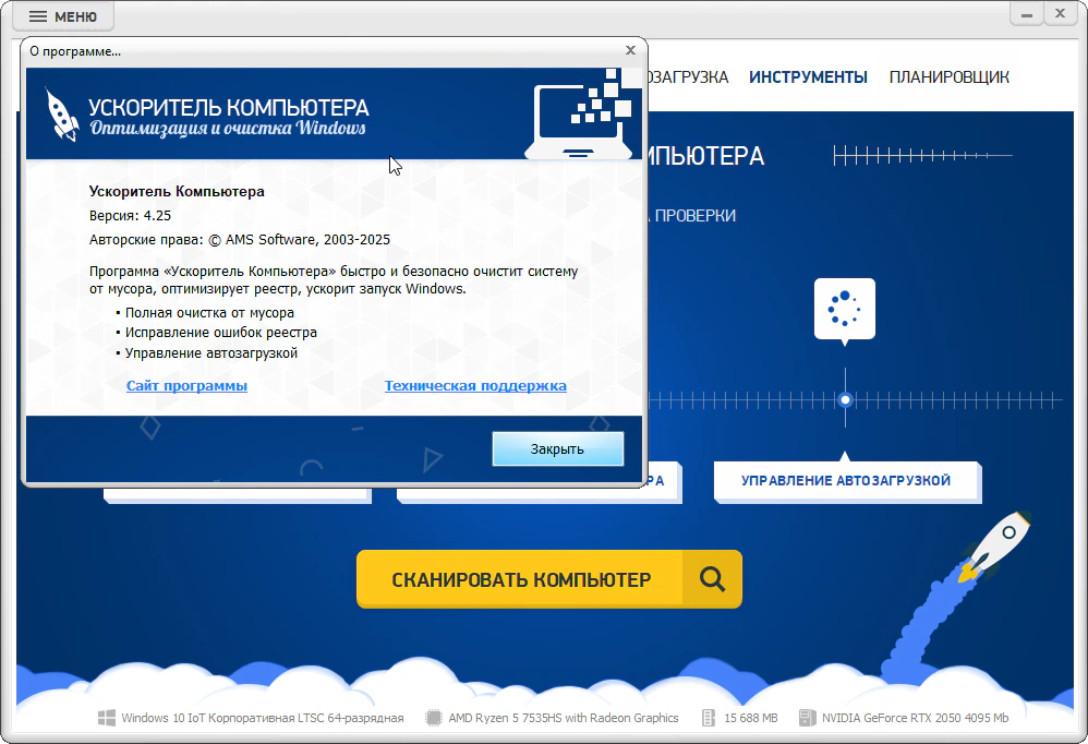 Ускоритель Компьютера + код активации 4.25 (на русском)