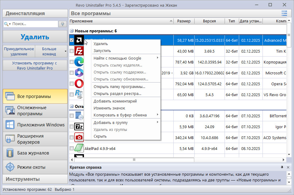 Эта программа нужна для того, чтобы удалять установленные приложения на компьютере правильно. Под словом правильно я подразумеваю то, что следов от них не останется в системе. Ведь практически все знают, что стандартный деинсталлятор оставляет мусор от удаляемых программ в системе. А это не проходит бесследно, со временем, когда достигается определенный порог, виндовс начинает тормозить, компьютер долго думает, в общем думаю понятно о чём я.