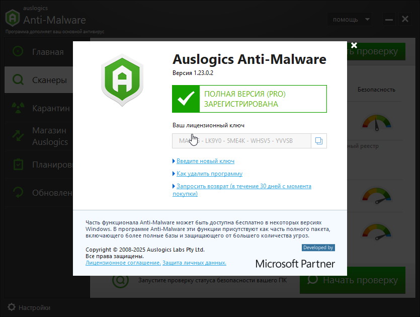 Auslogics Anti-Malware 1.23.0.2 + код активации