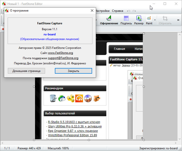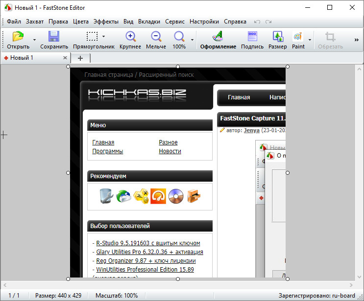 ![]() Вот решил рассказать Вам моим пользователям, об ещё одной программе, которая позволяет делать скриншоты. Она называется FastStone Capture, кстати, код активации в неё уже вшит, если говорить не много понятней, то она уже активирована. Более того, её интерфейс переведен на русский язык, ведь в стандартном инсталляторе он отсутствует. В общем думаю с внесенными изменениями в установщик понятно, теперь перейду к рассказу о функциях приложения. Программа слегка напоминает Camtasia Studio, только она имеет гораздо меньший размер, и конечно же не такой богатый набор функций, но в целом что бы делать качественные скриншоты, она годится. Она умеет захватывать как всю область экрана, так и ту, которая Вас интересует. Ну вот к примеру, Вам требуется захватить только активное окно, да пожалуйста, нажмите соответствующую кнопку, и снимок готов. Так же есть возможность захватывать прямоугольную область, но самое интересное, это то, что можно фотать отдельно любой объект. Ещё в приложении можно выставлять задержку снимка, то есть перед тем как будет сделан скрин, пройдёт определенное время, то которое Вы выберете. Кстати говоря, кроме скриншотов FastStone Capture умеет записывать в видео файл, что происходит в данный момент на компьютере. Не маловажным считаю то, что сделанный снимок можно открыть в встроенном редакторе, для последующего редактирования. Конечно суперфункциями редактор похвастаться не может, но так сказать базовый набор в нём есть, в принципе его более чем достаточно. В конце обзора хочется добавить, что программа умеет конвертировать полученное изображение в формат PDF, такой возможность может похвастаться далеко не каждое приложение подобного рода. Размер: 8 Mb Язык: русский Активация: имеется (ключ) Скачать: FastStone Capture 11.1 - на русском |