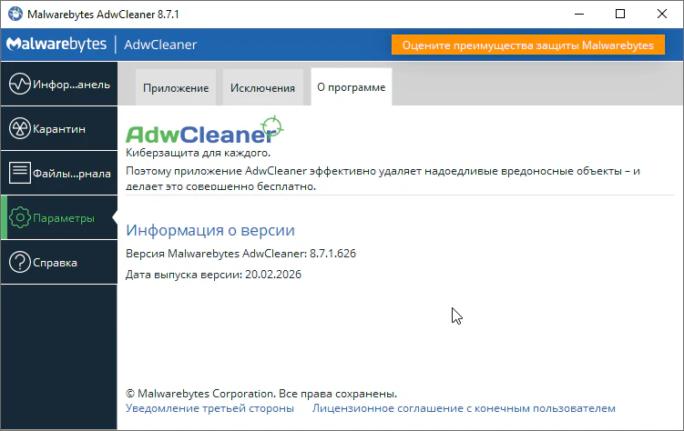 AdwCleaner 8.7.1.626 - на русском