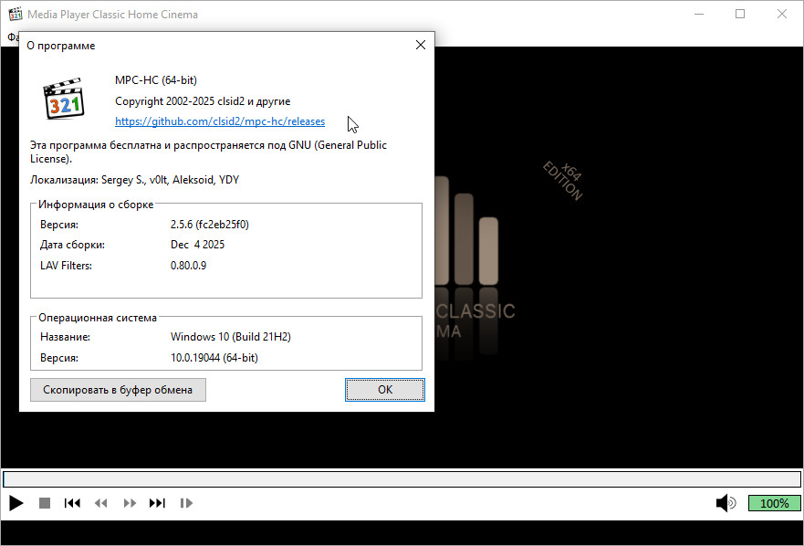 Media Player Classic - Home Cinema 2.5.6 - для windows 10/11
