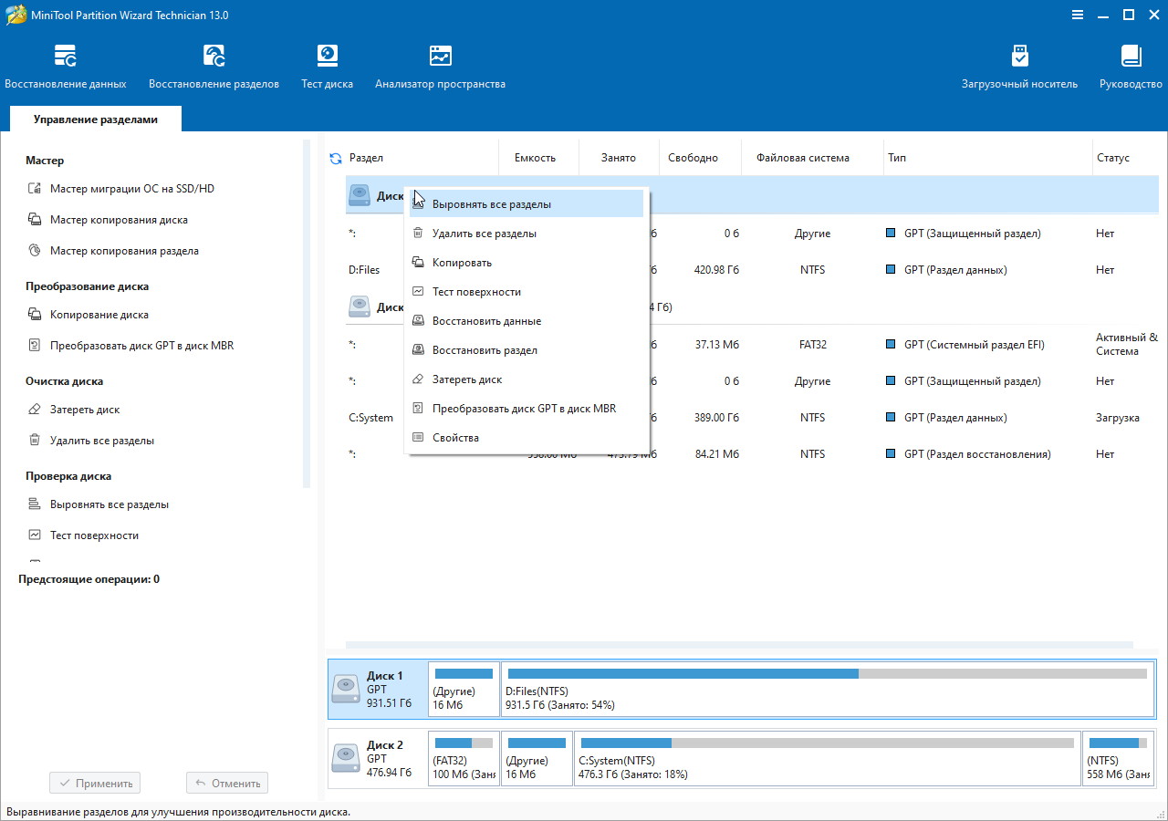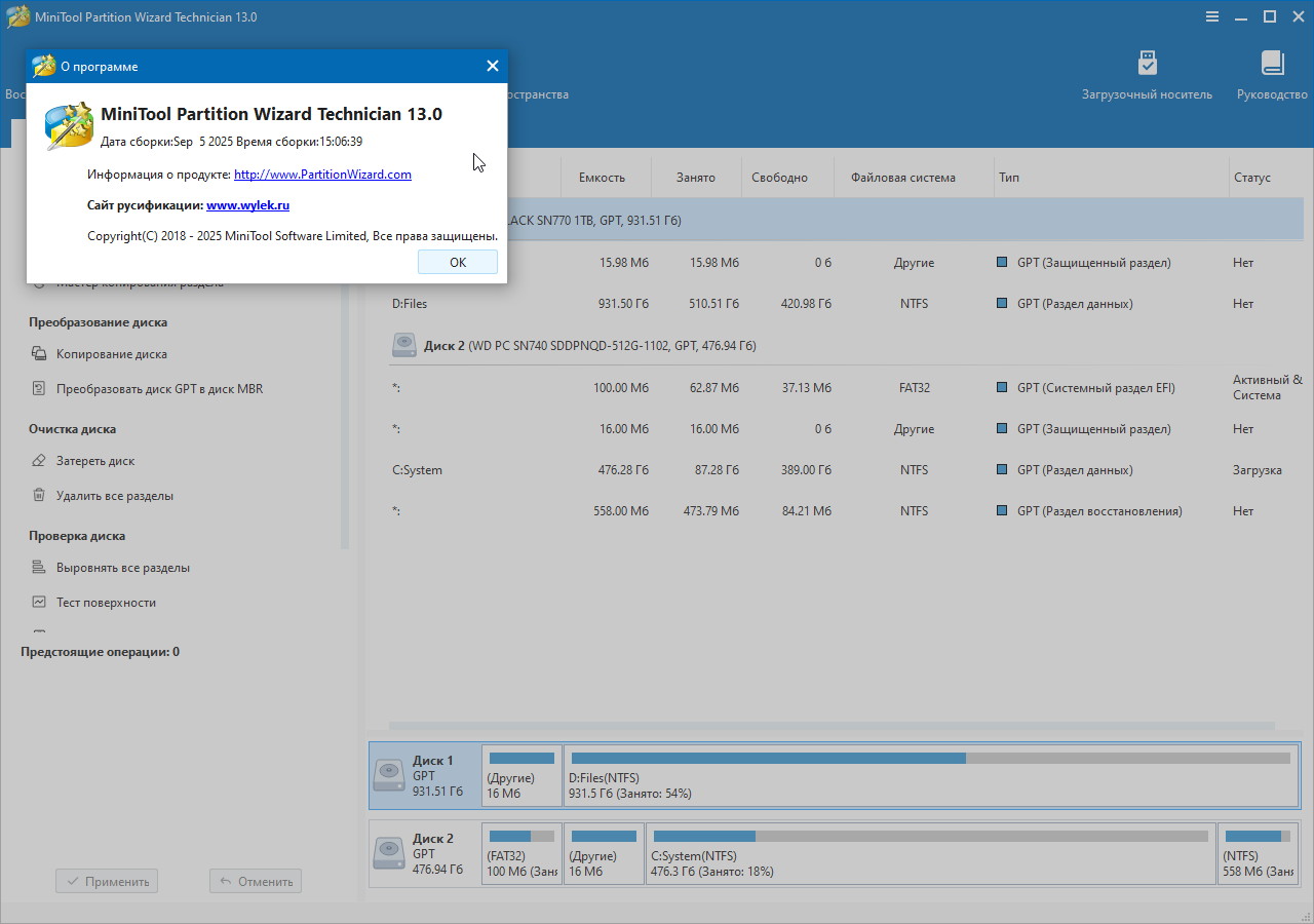 MiniTool Partition Wizard Technician 13.0 с ключом + русификатор