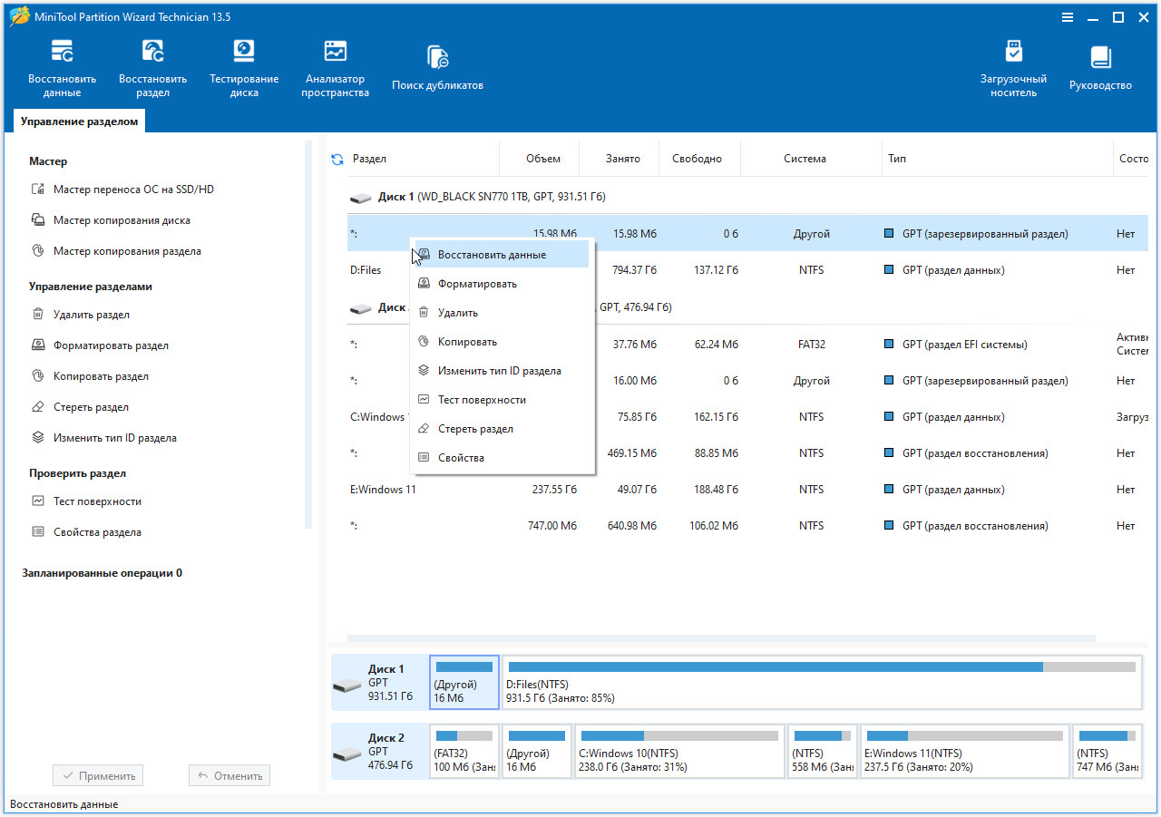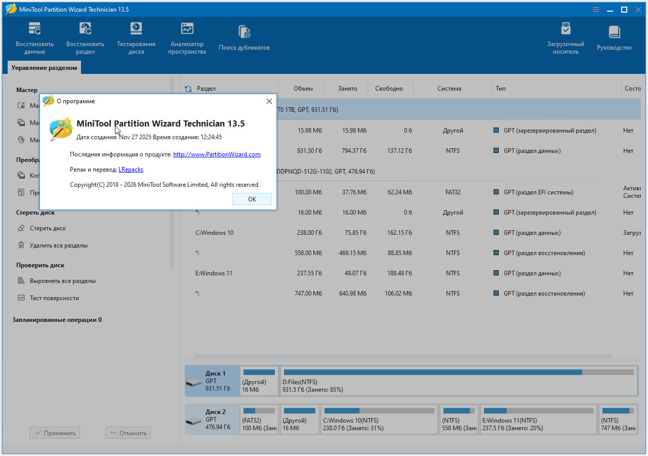 MiniTool Partition Wizard Technician 13.5 с ключом + русификатор