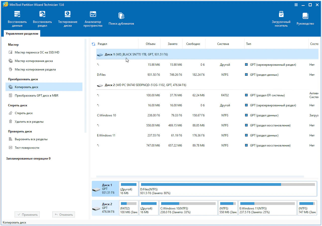 MiniTool Partition Wizard Technician 13.6 с ключом + русификатор