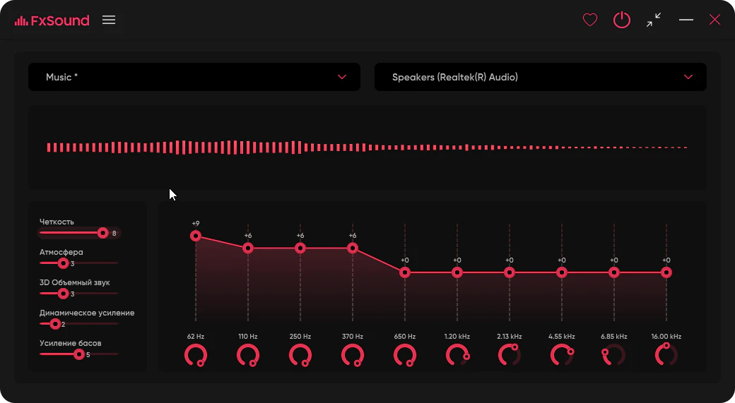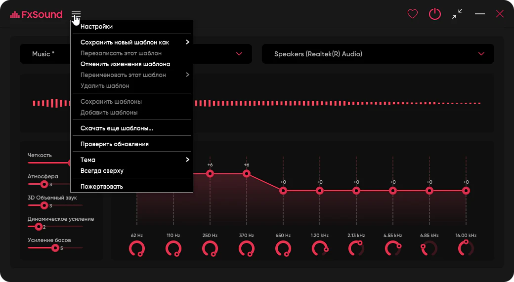 ![]() Не можете настроить эквалайзер на своем плеере? Тогда программа FxSound Pro поможет сделать вам это. Используя данное приложение Вы можете забыть про стандартный эквалайзер вашего проигрывающего устройства. Более того, я бы даже рекомендовал его отключить, и в место него использовать данную программу. В ней есть все необходимые регулировки звука, что бы Вы смогли настроить звучание вашей музыки под себя, а самое главное это очень просто сделать. Для начала нужно просто установить программу на свой компьютер, и запустить её. Дальше перед вами откроется окно с настройками, и Вы сможете приступить к их регулировкам. Кстати, перед тем как регулировать параметры, попробуйте встроенные шаблоны настроек. Всего их в приложении восемь штук, каждый рассчитан под определенный жанр музыки, и как правило большинству людей таких настроек будет достаточно. Если же Вы все же хотите попытаться самостоятельно настроить звук, то закончив настройку, сможете сохранить результат в свой собственный шаблон. Кстати, при необходимости, программу можно отключать нажатием всего одной кнопки, и точно так же её можно и включать. Разработчики программы не наградили её русским языком, однако в данную версию встроен русификатор, по этому её интерфейс полностью русскоязычный. Так же представленная версия FxSound не требует активации, другими словами она полностью бесплатна, весь её функционал разблокирован, и доступен пользователю сразу же после установки. Платформа: Windows 7/8/10/11 Активация: не нужна Размер: 3 Mb Язык: русский Скачать: FxSound Pro 1.2.6 |