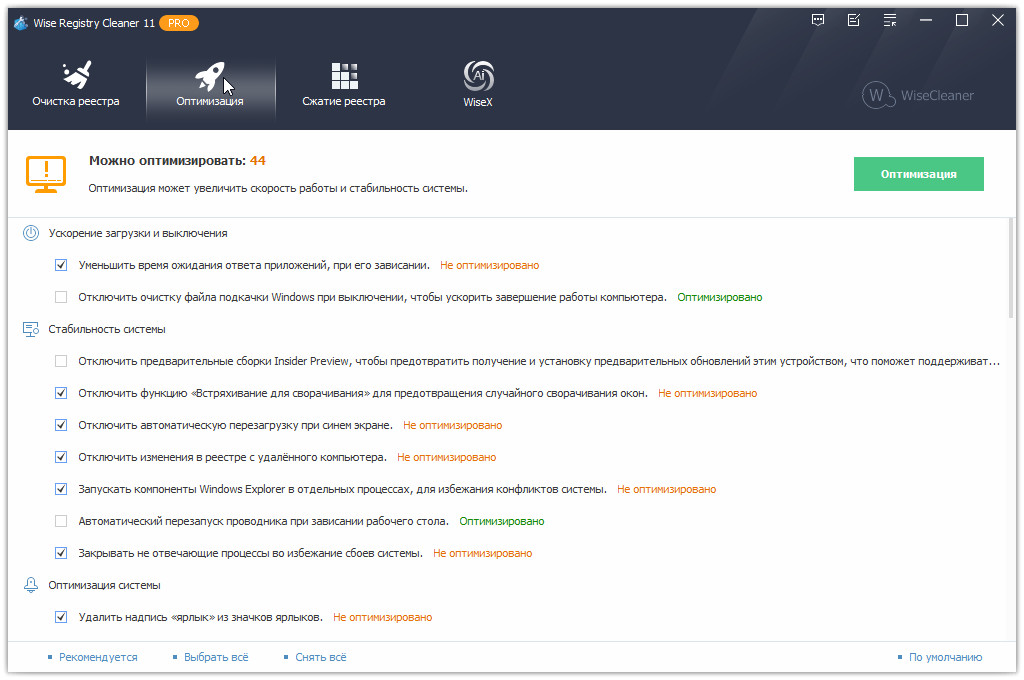 ![]() Wise Registry Cleaner Pro - это незаменимая программа для поддержания компьютера в чистоте, а если говорить точнее, то его реестра. Ведь практически всем известно, что скорость компьютера в целом очень сильно зависит и от системного реестра. Чем больше в нем не верных записей, тем медленнее будет работать система. Как только вы запустите после установки саму программу, вам будет предложено просканировать систему, если вы согласитесь с этим, то приложение начнет активный поиск неверных записей, разделов и прочего мусора в реестре. По окончанию проверки, вы сможете посмотреть все найденные ошибки, при чем они будут делиться на разделы, и вы сможете развернуть каждых из них, и подробно посмотреть в чем заключается найденная ошибка в реестре. После этого, вы сможете нажатием одной кнопки устранить все эти ошибки. Кстати, если вы не хотите, чтобы какая-то из ошибок была исправлена, вы можете добавить её в исключение. Кроме чистки системного реестра, приложение умеет проводить оптимизацию системы, благодаря чему так же повышается скорость работы компьютера. В некоторых случаях очень даже чувствительно, а в некоторых практически не заметно. Если вы обратили внимание, то Wise Registry Cleaner Pro имеет в конце приставку "Pro", а это значит, что представляемая версия уже активированная. Кстати, это уже вторая программа от этого производителя, у нас на сайте есть ещё Wise Care 365 Pro, это тоже интересный инструмент для настройки системы, только с более продвинутым функционалом. Размер: 10 Mb Язык: русский Активация: есть ключ Платформа: Windows Скачать: Wise Registry Cleaner Pro 11.3.1.733 |