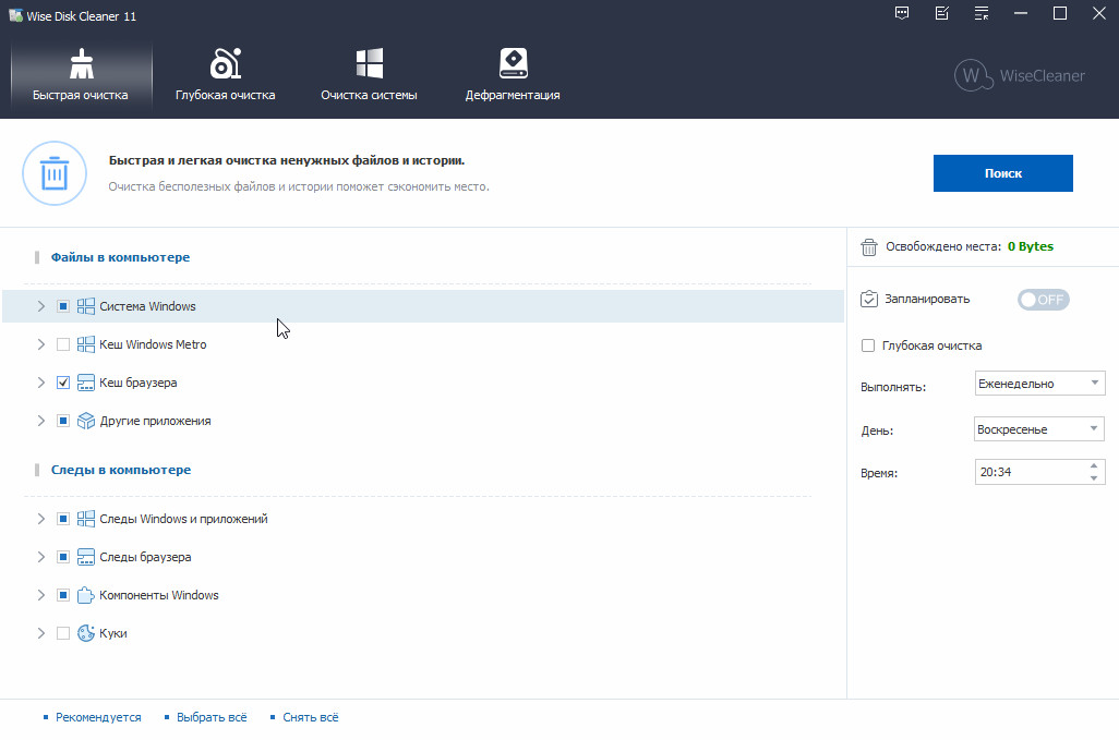 ![]() Многие пользователи даже и не подозревают, что периодически необходимо чистить диски компьютера от мусорных файлов, которые скапливаются в процессе вашей работы за компьютером. Но в один день, они понимают, что где-то пропало много места, особенно это касается системного диска "C". И только после этого многие задаются вопросом как почистить диск "C" от ненужных файлов? Для этой цели могу порекомендовать не большую программу Wise Disk Cleaner, её название говорит само за себя. Как только Вы её установите, то сразу же можно приступать к сканированию дисков на предмет мусора. Кстати перед этим можно выбрать в каких областях искать не нужные файлы. Рекомендую оставить данные настройки по умолчанию, и просто подождать пока приложение проведет сканирование, и обнаружит мусорные файлы. Затем просто нажатием одной кнопки Вы сможете избавиться от них, тем самым освободив занятое место. В Wise Disk Cleaner присутствует несколько методов очистки: быстрая, глубокая, и очистка системы. По мимо чистки дисков, в программе есть встроенный дефрагментатор, используя который можно дефрагментировать жесткие диски, тем самым ускорить их. Хочу обратить ваше внимание, что SSD накопители не нуждаются в дефрагментации, более того, для них это вредно. Эта программа не много модернизирована, из неё удалены реклама, и другие не нужные элементы, которые на наш взгляд являются лишними, оставлен только самый необходимый функционал. Год: 2025 Размер: 6 Mb Язык: русский Платформа: windows Скачать: Wise Disk Cleaner 11.2.8.848 |