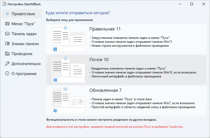 ![]() Довольно многим пользователям после выхода операционной системы Windows 11 не понравилось стандартное обновленное меню пуск. Многие хотели бы вернуть прежнее меню, и теперь благодаря программе StartAllBack, такая возможность есть. Достаточно установить эту программу, и можно вернуть старое меню пуск от предыдущих версий Windows. Программа предлагает три варианта: "Правильная 11", "Почти 10" и "Обновленная 7". Думаю, из названия не сложно догадаться что значит каждый из представленных вариантов. Кстати говоря, приложение так же возвращает всем привычное меню правой кнопки мышки, то есть контекстное меню. Лично я так и не смог привыкнуть к новому, поэтому решил включить старое. Кстати я долго не хотел переходить на WIndows 11 именно из-за этого. Кроме этого приложение позволяет дополнительно настроить все под свой вкус, имею ввиду какие папки и значки отображать, а какие нет. Думаю вам понятно в общих чертах для чего нужна эта программа, от себя могу добавить что работать за компьютером благодаря ей стало на много привычнее. Теперь внесу ясность об активации StartAllBack, дело в том, что ключ встроен в установщик. Таким образом, сразу же после установки, программа становится активированной. В общем ей можно начинать пользоваться безо всяких ограничений по функционалу. Единственное в ней будут отключены обновления, это необходимо для того, чтобы регистрация не слетала. Размер: 1.6 Mb Язык: на русском Активация: есть ключ Скачать: StartAllBack 3.9.21 для Windows 11 |