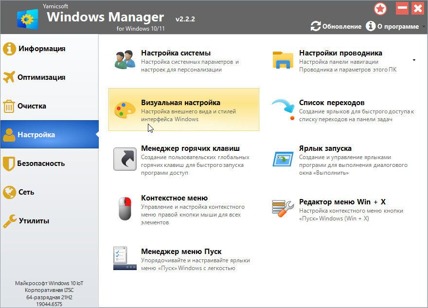 ![]() До недавнего времени, разработчики программы Windows Manager, выпускали для каждой версии Windows свою версию приложения. Но с недавних пор они решили сделать в одной версии, поддержку двух операционных систем, а именно версию 10 и 11. Далее расскажу для тех, кто не в курсе для чего нужна эта программа. После её установки вы сможете произвести очистку системы, при чем есть опция под названием "очистка в один клик". Используя её нажатием всего одной кнопки, можно очистить систему от временных файлов, не нужных записей в системном реестре. Все эти же действия можно сделать и в ручном режиме, кстати, что я и рекомендую делать. Так же есть возможность управлять автозапуском, имеется ввиду можно добавлять и удалять в меню автозагрузки программы, которые будут стартовать одновременно с Windows. Кроме этого можно управлять и службами системы, останавливать удалять, выставлять запуск с задержкой и так далее. Ещё программа умеет искать дубликаты файлов, удалять предустановленные программы Windows. В добавок доступна настройка контекстного меню, там вы сможете удалить не нужные элементы, ну или же на против добавить. По мимо этого, присутствует возможность визуальной настройки системы. К примеру, можно изменять стандартную иконку папок, менять им цвет, и делать ещё много чего подобного. Это далеко не весь перечень возможностей этой программы, но думаю вы и так уже поняли для чего она нужна. Активировать Windows Manager не нужно, регистрация происходит автоматически в ходе установки. Просто проинсталлируйте его, и можете сразу начинать им пользоваться. Размер: 14 Mb Активация: не требуется Платформа: Windows 11,10 Язык: русский Скачать: Windows Manager 2.2.2 |