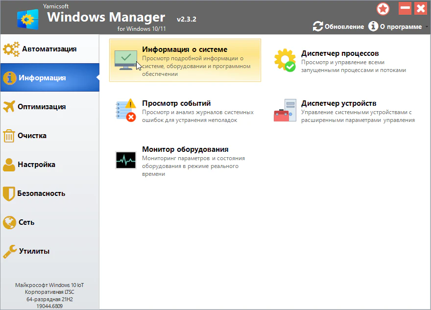 ![]() До недавнего времени, разработчики программы Windows Manager, выпускали для каждой версии Windows свою версию приложения. Но с недавних пор они решили сделать в одной версии, поддержку двух операционных систем, а именно версию 10 и 11. Далее расскажу для тех, кто не в курсе для чего нужна эта программа. После её установки вы сможете произвести очистку системы, при чем есть опция под названием "очистка в один клик". Используя её нажатием всего одной кнопки, можно очистить систему от временных файлов, не нужных записей в системном реестре. Все эти же действия можно сделать и в ручном режиме, кстати, что я и рекомендую делать. Так же есть возможность управлять автозапуском, имеется ввиду можно добавлять и удалять в меню автозагрузки программы, которые будут стартовать одновременно с Windows. Кроме этого можно управлять и службами системы, останавливать удалять, выставлять запуск с задержкой и так далее. Ещё программа умеет искать дубликаты файлов, удалять предустановленные программы Windows. В добавок доступна настройка контекстного меню, там вы сможете удалить не нужные элементы, ну или же на против добавить. По мимо этого, присутствует возможность визуальной настройки системы. К примеру, можно изменять стандартную иконку папок, менять им цвет, и делать ещё много чего подобного. Это далеко не весь перечень возможностей этой программы, но думаю вы и так уже поняли для чего она нужна. Активировать Windows Manager не нужно, регистрация происходит автоматически в ходе установки. Просто проинсталлируйте его, и можете сразу начинать им пользоваться. Размер: 14 Mb Активация: не требуется Платформа: Windows 11,10 Язык: русский Скачать: Windows Manager 2.3.2 |