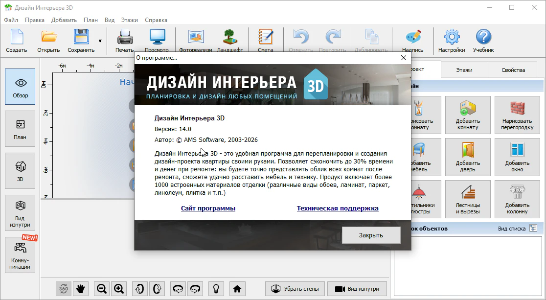 Дизайн Интерьера 3D 14.0 + ключ (на русском)