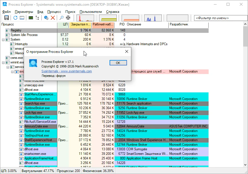 Process Explorer 17.10 - для Windows (на русском)