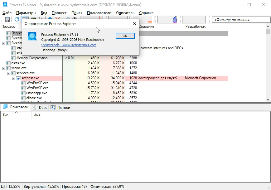 Process Explorer 17.11 - для Windows (на русском)