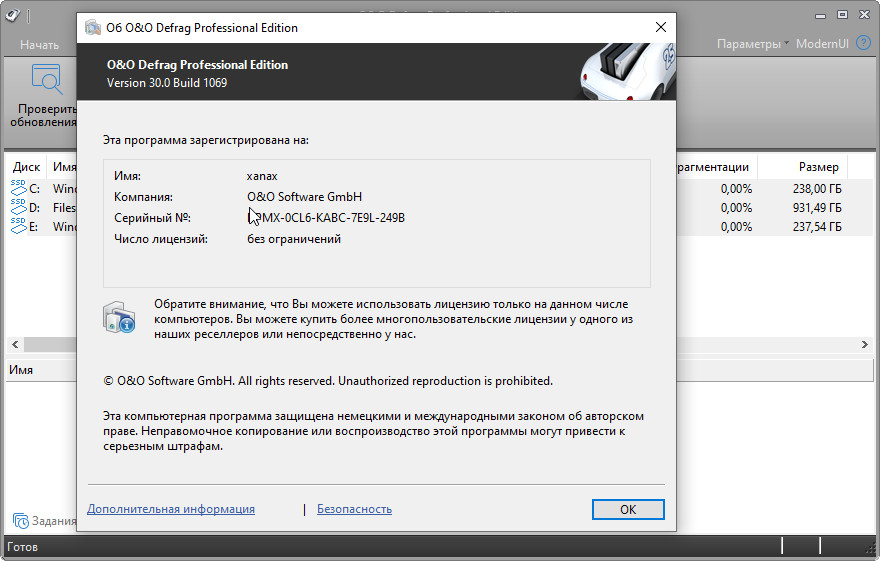 |  Информация в компьютере хранится на жестких дисках, по мере того как Вы его наполняете, информация меняет своё место расположение. Так вот когда Вы запускаете какой-то файл система тратит время на его поиск, в результате этого скорость работы самой системы снижается. Что бы избежать этого, нужно периодически делать дефрагментацию дискам. Для этой цели лучше всего подходит программа O&O Defrag. Конечно можно пользоваться и стандартными инструментами Windows для этой цели, однако я рекомендую всё же использовать специализированное программное обеспечение. Во первых данная программа работает на много быстрее стандартной утилиты системы, во вторых качество так же лучше, более того, работать с ней на много приятнее. После установки потребуется выполнить не сложный анализ всех дисков, это нужно для того, что бы определить степень фрагментации файлов. После теста, программа покажет на сколько диски нуждаются в дефрагментации, ну а уже потом можно выполнить и её, конечно если она потребуется. По словам разработчиков, после дефрагментации производительность диска повышается на 5-8%, согласитесь это довольно прилично. А если ещё настроить и оптимизировать другие параметры системы, то можно добиться не плохого прироста производительности, но это уже другая история. Лекарство: есть (встроено) Размер: 17.5 Mb Язык: русский Скачать: O&O Defrag Professional 30.0.1069 |