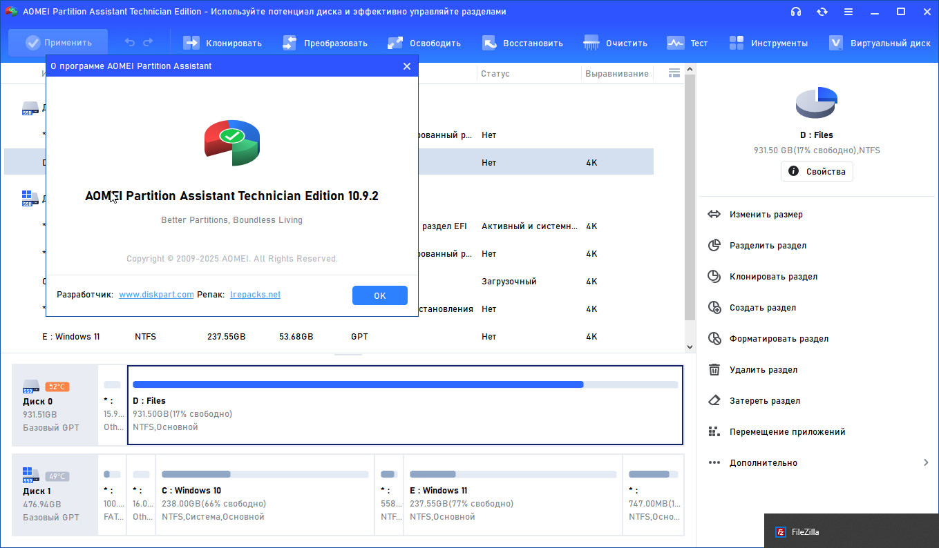 AOMEI Partition Assistant Technician 10.9.2 + код (активация)
