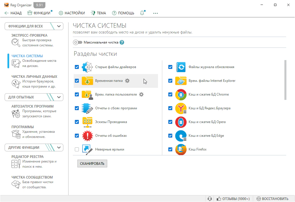 ![]() Уже давно было замечено что с течением времени система Windows теряет скорость работы, то есть она начинает медленнее реагировать на запросы пользователя, появляются ошибки. У меня у самого так и было, пока я не установил программу Reg Organizer, мне её посоветовали на каком-то форуме, уже не помню. В общем эта программа призвана не давать вашей системе загрязняться, а даже если такое уже произошло, то она поможет её Вам очистить, и вернуть былое быстродействие. Приложение позволит Вам выполнить тонкую очистку и настройку системного реестра, который является одним из главных компонентов системы, от него зависит очень много. После запуска мастера, начнётся поиск устаревших ключей в реестре, после того как он будет завершён их можно будет удалить, тем самым очистить реестр от мусора. Reg Organizer так же поможет выполнить дефрагментацию реестра, с последующим сжатием. Вот эти процедуры проводимые с реестром, на самом деле очень сильно прибавляют скорости и стабильности системе. Ещё приложение умеет чистить жесткие диски от не нужных файлов, порой это позволяет здорово прибавить свободного места на дисках, всё зависит от степени загрязнённости последних. Хотелось бы сказать, что в приложение имеется инструмент который поможет выполнить правильное удаление любой программы, под правильным подразумевается, что после такого удаления не останется мусора. Больше всего меня порадовал в программе пункт "Тонкие настройки", перейдя в него я обнаружил множество различных параметров, которые влияют на быстродействие системы. Порадовало и то, что там есть функция прибегнув к которой программа сама выставит оптимальные параметры для наилучшего быстродействия. Кроме всего выше сказанного остаётся добавить, что Вы сможете через эту утилиту в ручную редактировать реестр операционной системы Windows. Этот оптимизатор не нуждается в активации, это было достигнуто благодаря тому, что ключ был интегрирован в дистрибутив приложения Рег органайзер, то есть он вводится автоматически в процессе установки. В месте со стандартной версией, идёт и портативная, которая не требует установки, и может запускаться с любого носителя. Размер: 20 Mb Лекарство: вшито (ключ) Язык: только русский Скачать: Reg Organizer 9.91 |